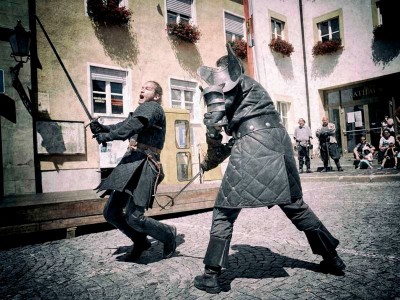 Neben Theateraufführungen mit Schwertkämpfen, einem Feuerwerfer, vielen Buden und Kostümierten in und um die Hauptstraße, bildete sicher auch das Ritterturnier am Stadtseegelände einen weiteren Höhepunkt in der Vielzahl der Attraktionen während der Festmonate.