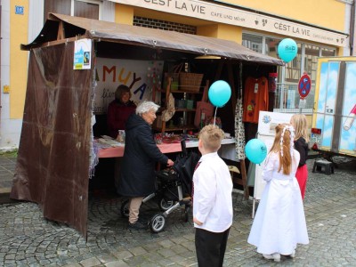 Die Geschäfte in der Hauptstraße waren geöffnet. Neben den neuesten Schuh-Mode-Trends, Büchern und Schreibwaren bot das „komm rein“ zusammen mit der Q11 des Gymnasiums ein kleines Straßencafé an.