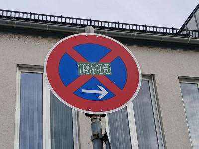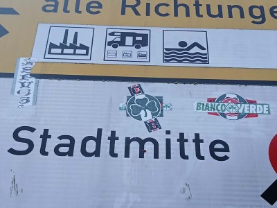 Es ist zur weit verbreiteten Unsitte geworden, dass insbesondere Anhänger von Fußballvereinen, mit Aufklebern und Graffitis auf Verkehrsschildern ihre Spuren hinterlassen, um auf ihre Lieblingsmannschaft aufmerksam zu machen oder um Unmut über den Rivalen zum Ausdruck zu bringen.