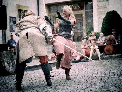 Neben Theateraufführungen mit Schwertkämpfen, einem Feuerwerfer, vielen Buden und Kostümierten in und um die Hauptstraße, bildete sicher auch das Ritterturnier am Stadtseegelände einen weiteren Höhepunkt in der Vielzahl der Attraktionen während der Festmonate.
