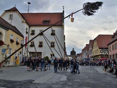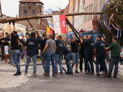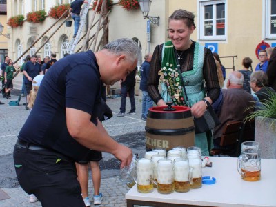 Zahlreiche Buden mit allerlei Leckereinen und Fahrgeschäfte waren auf dem Festplatz in der Badstraße zusammen mit einem ordentlichen Festzelt aufgebaut. Dort fand nach dem aufstellen des Kirchweihbaums auch der traditionelle Bieranstich durch Bürgermeister Claus Seifert statt.